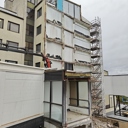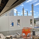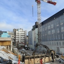 Työmaalla käynnissä julkisivun eristystyöt, IV-kattokonehuoneen rungon asennus, väliseinämuuraus, pintalattioiden valutyöt sekä työmaa-aikaisen hissin asennus.