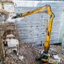 AK-lohkon rungon purku käynnissä. Sairaalan pääsisäänkäynnin ympäristöä varattu purkutyöalueeksi.