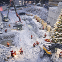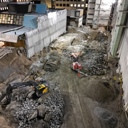 D-osalla käynnissä maanrakennustyöt ja louhinta. A-osalla saneeraustyöt etenevät.