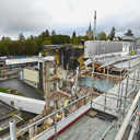 Työmaalla käynnissä rungon elementtiasennus ja itäpäädyn KVV-liittymät.