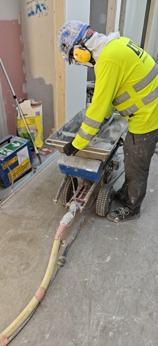Työmaalla käynnissä tasoite- ja maalaustyöt, lattiapinnoitukset, julkisivun eristystyöt, väliseinämuuraus, pintalattioiden valutyöt, katon villoitus- sekä kattohuopa-asennus, kevyet väliseinät, tekniikan asennukset väliseiniin ja pintalattioiden hionta.