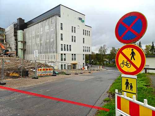 - Työ- ja henkilöturvallisuutta varten muistutus, että F-lohkon ja Sähkömuuntajan välisellä ajoradalla jalankulku sekä pyöräilyliikenne on kielletty.