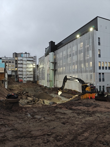 - Rakentamisen toinen vaihe menossa. D-osalla käynnissä maanrakennustyöt ja louhinta. Vko47 torstaina alkaa räjäytystyöt.