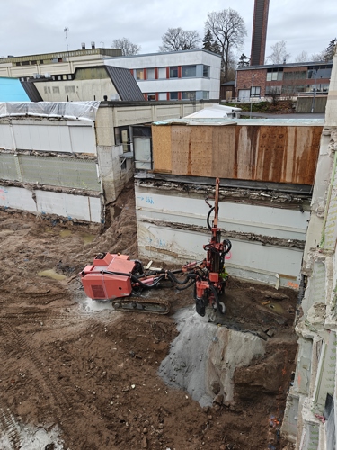 D-osalla käynnissä maanrakennustyöt ja louhinta. A-osalla saneeraustyöt etenevät.
