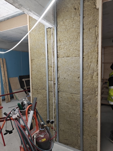 A-lohkon väliseinien villoitus ja tuplaus käynnissä: